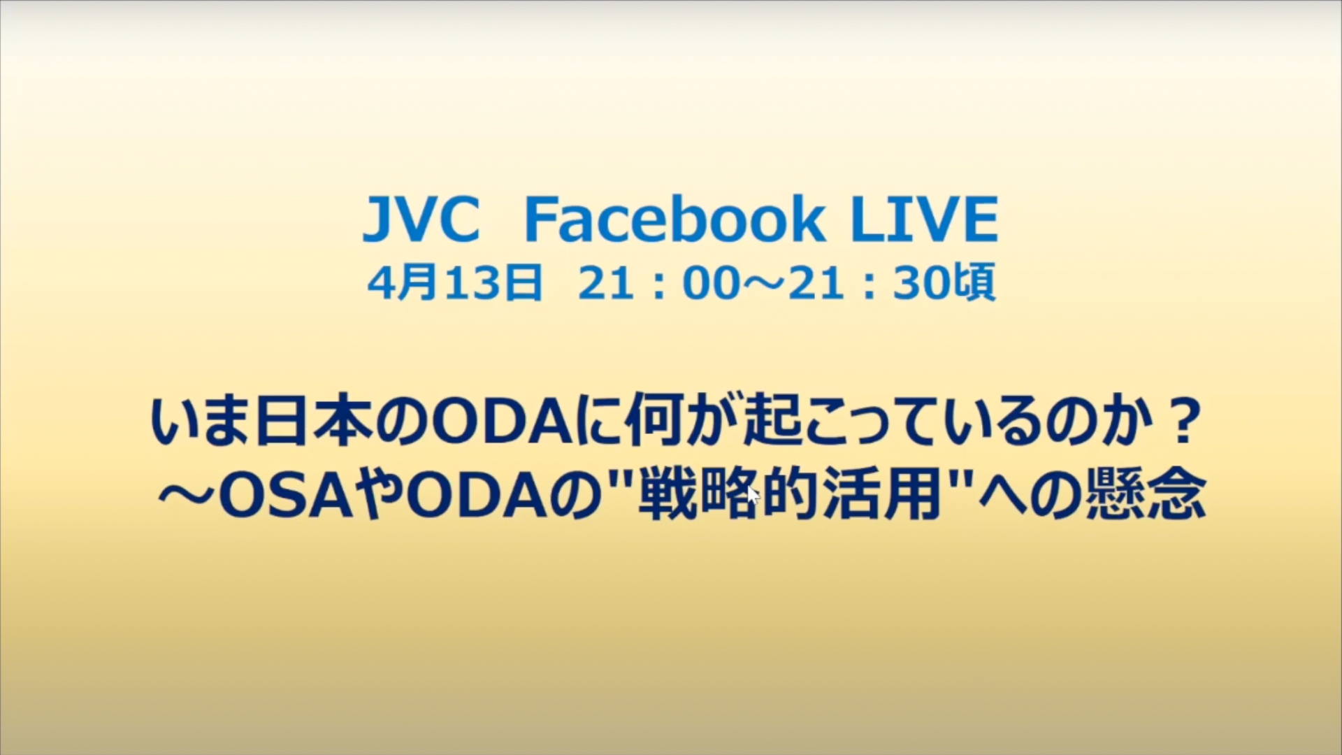4/13(木)ライブ配信録画公開!「いま日本のODAに何が起こっているのか?~OSAやODAの"戦略的活用"への懸念」