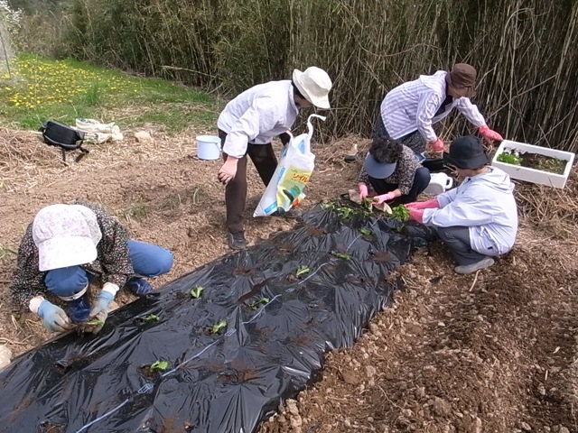 マルチを使い、レタスの苗を植えます