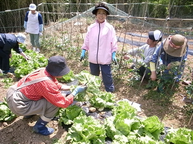 6月上旬、畑にはレタスが青々と実り、収穫の時期を迎えていました。住民の方々と収穫第1号となるレタスを収穫しました。「瑞々しくておいしかったわ」と自分たちの手で作った野菜の味を楽しんだようです。これから厳しい夏がやってきます。草むしりなど手入れが必要になりますが、浦島小学校で行う秋の収穫祭に向けて住民の皆さんと協力して畑づくりを行っていきます。