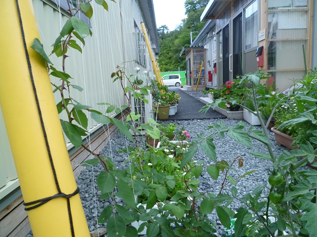 ネットの設置に際しては住民の方々から様々な要望を受けました。仮設住民の方々は震災以前には庭や畑でたくさんの植物を育ててきた人も多く、スペースの限られた仮設住宅でも駐車場の端や玄関の脇のプランターでたくさんのキレイな花や美味しそうな野菜が育てられています。