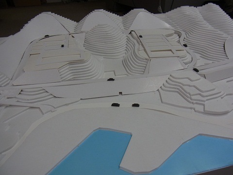 要望の聞き取りに当たって、住民の皆さんがよりはっきりしたイメージを持って考えられるように、以前から話題にのぼっていた造成地の模型を用意しました。模型を目にした住民の皆さんからは、「やっぱり模型があると分かりやすいなあ」との声があがりました。アドバイザーによる説明の際にも模型が利用されたことで、住民の皆さんの理解も深まり、その後の活発な議論につながっていきました。