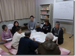 また、勉強会の中では、結露の問題だけでなく、仮設住宅の住環境に関する問題や要望が挙げられました。JVCは、これらの問題について、限られた条件の中で入居者の方々と知恵を出し合い、よりよい住環境を模索すると共に、住民の方々の要望や意見が行政へ届けられるようにサポートしていきます。