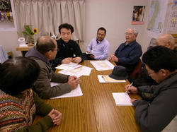 まず小々汐の相談会では、造成地内に整備される擁壁(ようへき)の検討が行われました。協議の結果、宅地と宅地の間、宅地と道路の間に設けられる擁壁の種類や長さの要望が、設計に関わるコンサルタント会社に伝えられました。また、住民自身で設置する宅地内の側溝については、誰がどの場所に設けるかについて、住民間での申し合わせが定められました。
