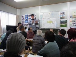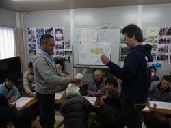 3月31日、2012年度最後となる防災集団移転のアドバイザー派遣を実施し、地区ごとの住宅相談会を開催しました。この間検討を重ねてきた造成地の詳細設計がほぼ固まったため、今回の相談会では、住宅を建設する区画を決めるための抽選会を行いました。