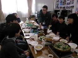 皆でワカメ料理を味わいました(右から4人目はJVC岩田)