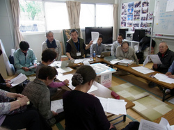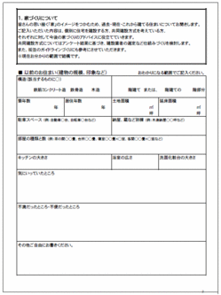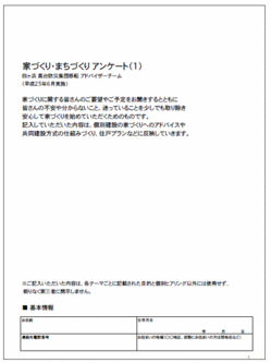 アンケートは、以前の住まいの規模や間取り、現在の仮設住宅やアパートでの生活状況、新しく建てる住まいに対する希望を聞き取る内容となっています。またアンケートの中では、震災前の集落の気に入っていたところや不便だったところ、新しいまちに対する希望やイメージについても、あわせて質問されています。アドバイザーからは特に家づくりに関して、「不安や分からないことを取り除き、これから住む家を具体的に想像することが重要です。どのような形で家を建てるにしても、そうした作業をしておくことは家づくりに取り組む上で役に立ちます」との話がありました。