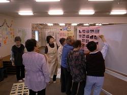 JVCは、昨年6月から鹿折地区で活動する他の支援団体とともに、「趣味のじかん」を開催してきました。住民の方々の要望を聞き、「どうしたら普段の交流の場に出てこない住民の方に参加してもらえるか」、「体を動かしながら、住民同士が交流できる企画はないか」といったことを支援団体間で協議しながら、この企画を毎月1回鹿折中学校仮設住宅で実施してきました。