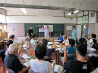 8月25日に開催された大浦地区の住宅相談会では、はじめに住宅の各建設方式のメリット・デメリットがアドバイザーによって解説されました。ここでは(1)共同発注方式(2)共同建設方式(3)個別建設方式(地元工務店)(4)個別建設方式(ハウスメーカー)の四つの建設方式が取り上げられ、「費用」「手間」「アフターケア」などの項目に応じて、アドバイザーが各建設方式を評価していきました。大浦地区では今後、住民の建設方式の希望を把握するためのアンケートを行うことになりました。