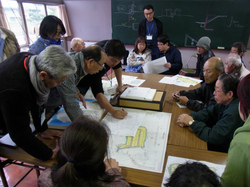 図面による確認作業。梶ヶ浦地区の話し合いにて