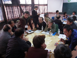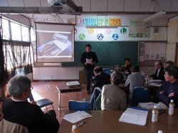 12月1日、浦島地区振興会主催による「旧浦島小学校施設利用等セミナー」が開催されました。同振興会の委員(約20名)を対象として実施された今回のセミナーの目的は、浦島地区のまちづくりを見据え、旧浦島小学校の施設をどのように活用するべきかを話し合うことです。同振興会のサポート役であるJVCは、このセミナーに際して浦島地区(大浦(おおうら)、小々汐(こごしお)、梶ヶ浦(かじがうら))の防災集団移転のアドバイザーでもある専門家(2名)を講師として派遣しました。