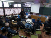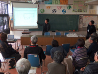 続いて、大浦・小々汐(こごしお)・梶ヶ浦(かじがうら)の三地区を対象として住宅建設に関する勉強会が行われました。はじめにアドバイザーから、リフォームの事例を通じて断熱、耐震、間取りや美観に関する解説がなされました。また、共同建設方式における追加の住宅モデルプランが提示されました。共同建設方式への参加を検討している住民からは「打ち合わせを細目にしたいが、今後の進め方は?」「建設に当たる具体的な業者は?」などの質問が投げ掛けられ、アドバイザーがそれらの問いに丁寧に答えていきました。