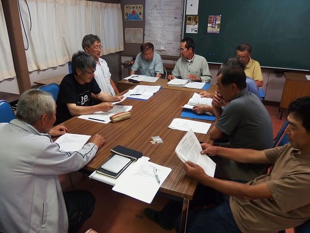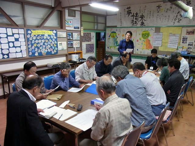 6月5日、浦島地区振興会(以下、振興会)の役員および三部会(施設利用部、地域資源開発部、環境・文化部)の部長・副部長による会議が旧浦島小学校で開かれ、今年度の事業の進め方や活動計画などに関する話し合いが行われました。この結果、今年度は、振興会の三部会が中心となり、旧浦島小学校の施設利用の検討や地域資源を生かした事業、震災以降中断していた集落対抗運動会の開催に向けた取り組み等が進められることになりました。