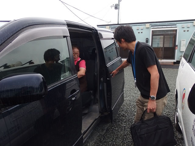 参加者への送迎を行うJVC伊藤(写真右側)