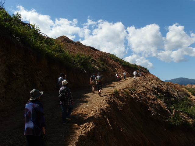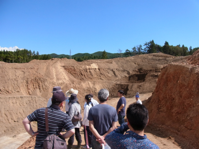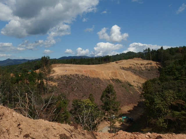 21日の午前中に実施した見学会には、約20名の住民が参加しました。大浦地区では北側・南側二ヶ所で造成工事が進められているため、住民・アドバイザー・JVCスタッフが二手に分かれて造成地に向かいました。造成地に実際に足を運ぶのは、同様の見学会を開催した今年2月以来です。見学会に参加した住民からは「2月の頃に比べて木々の伐採が随分と進んだ」との声があがる一方で、「これから大量の土を運び出すことになる。まだまだ時間が掛かる」との感想が聞かれました。