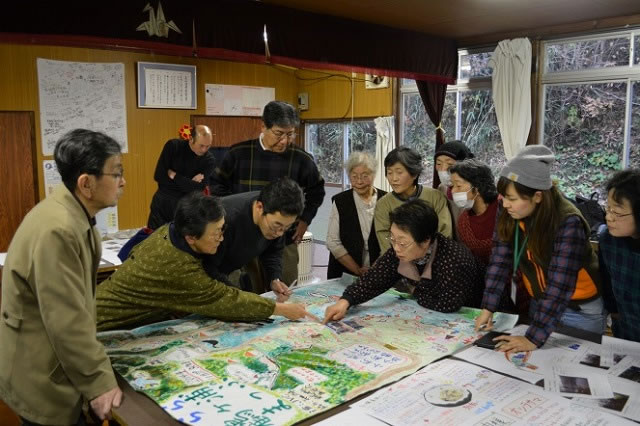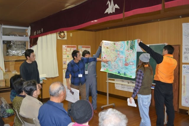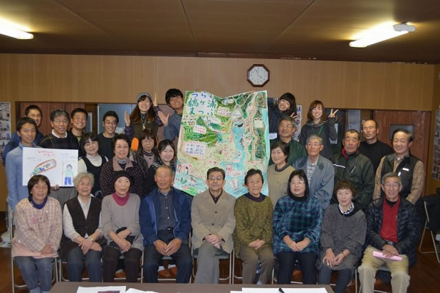 完成した地図とまとめは、住民の皆さんの前で発表させていただきました。皆さんからは、「もっと勉強しないとなぁ」「温故知新という言葉があるが、正にその通りだと思う。まとめてくれてありがとう」「(発表会の盛り上がりを受けて)震災前の活気を取り戻したようだ」といった感想が寄せられました。