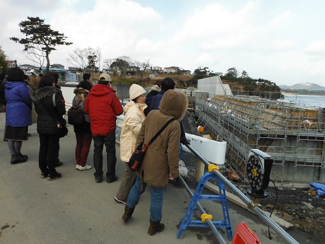 その他にも、気仙沼復興商店街 南町紫市場の訪問、大浦地区にある水産加工場の見学、大谷海岸に建設されている防波堤と、東日本大震災で津波の被害を受けた気仙沼向洋高校の見学など、盛りだくさんの2日間となりました。