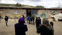当初、住民は、近くのイスラエル入植地の中に学校を建設して欲しいとイスラエルと交渉しましたが、一切拒否されたそうです。そこで住民は、インターネットで見たブラジルのスラムでの学校建設の方法を真似して、古タイヤと土だけで学校を作りました。現在この学校には、小学校1年生から中学3年生までの150人が通っています。