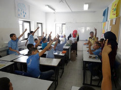 45の学校に対し、学校環境(教室やトイレの衛生面、安全面など)に関するモニタリングと訪問指導を行った他、45人の教師に、学校の衛生環境についての講習を提供しました。助言を受けた学校では、トイレや教室の匂いや清潔さは改善されましたが、イスラエルの占領政策によって、教室が足りなくても学校を増築できない、パレスチナ自治政府が関与できないので改修費用や清掃道具が足りない、イスラエル政府に学校が「違法建築」とされて1階部分を全てコンクリートで埋められ使えなくなったなどの問題を、多くの学校が抱えていることも分かってきました。他方で、トレーニングを受けた教師たちは、学校環境における問題点や改善すべき点を理解し、生徒たちに掃除をさせ、自らも休憩中に校庭を掃除し、校庭に植樹し、壁を塗り替え、リサイクルのペットボトルで教室を飾り付け、校内の売店で売られている食品の内容を監督するようになるなど、問題意識の大幅な向上が見られました。
