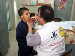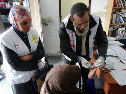 違法なイスラエル入植地や高さ8メートルのコンクリート壁によって孤立状態に置かれた村落などの、1,527人の住民に対し、健康診断と個人カウンセリングを提供しました。また、612人の住民に健康教育を実施しました。健康診断で問題が発見された場合は、専門医に紹介したり、医薬品を提供したりしたほか、高血圧や糖尿病に関するパンフレットを配布し、健康に関する意識の向上と生活の改善も促しました。さらに、東エルサレム各地で開催されたサマーキャンプでは、333人の子どもたちに健康教育や救急法講習を提供しました。