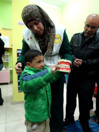 現在は、学校、幼稚園、地域社会施設などの協力を得て、学校生徒や教師へのトレーニング、子どもたちや保護者への健康教育と健康診断、地域青年たちへの救急法トレーニング、孤立した村での巡回診療などを実施しています。この事業によって、トレーニングを受けた子どもたちや教師たちが自発的に学校内外で活動するようになり、健康診断、巡回診療、サマーキャンプを通じ、パレスチナ人住民の健康管理と健康に対する意識向上にも貢献しています。