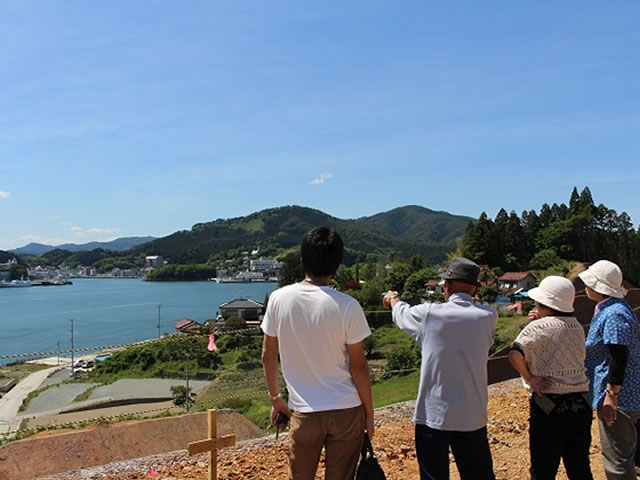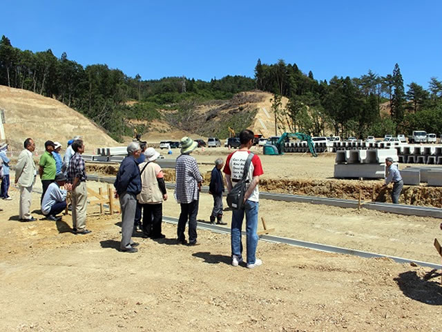 6月7日、防災集団移転のアドバイザー派遣を実施しました。今回は、大浦地区の造成地見学会と総会が開催され、住民約30名の参加を得ました。