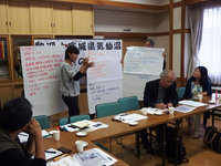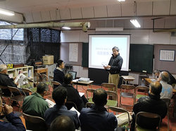 続いて訪れた「春蘭の里」は、石川県鳳珠郡能登町にて、農家民宿を開業し、農村の再生に取り組む事例として全国に知られています。現在では、47軒の農家民宿があり、「田舎にあるものを食べてもらい、田舎の良さを体験してもらおう」と県外や海外から多くの来訪者を受け入れています。また、この地区では、閉校した小学校を宿泊施設(宮地交流宿泊所「こぶし」)として活用しています。この施設には、ユニットバスや台所を備えた客室10部屋、研修室、食堂、自炊ができる炊事場などが整備されています。施設の運営に関しては、能登町から指定管理を受託している「NPO法人こぶし」が行っており、客室10部屋をオーナー制で運用しています。ヒアリングの際、「春蘭の里」事務局長の多田喜一郎(ただ きいちろう)氏より、「地域づくりの取り組みを始める際、初めから地域全体を巻き込もうと思ったら事業は進まない。ある程度、一部のメンバーで引っ張っていくことも大切」、「事業を推進するには、『バカ者』になれる人が必要」といったアドバイスがありました。