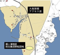 今後は、在宅住民と防集参加者との繋がりを深め、地域が本来持っている一体感を取り戻していくことが重要となります。しかしながら、梶ヶ浦地区の防災集団移転団地は高台に造成され、また、在宅住民の家々から離れた場所に位置しており、在宅住民からは「団地までは遠いので歩いていけない」、「同じ地区でも二つに分かれたような感じだ」などの声が聞かれています。そのような住民の声から、今後、在宅住民と防集参加者との日常的な交流がなくなり、両者の繋がりが希薄となることが懸念されています。