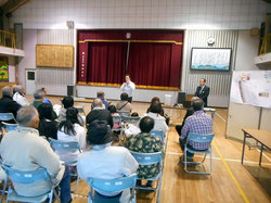 11月1日、防災集団移転のアドバイザー派遣を実施しました。今回は、大浦地区協議会の造成地見学会および総会が開催され、住民約30名が参加しました。