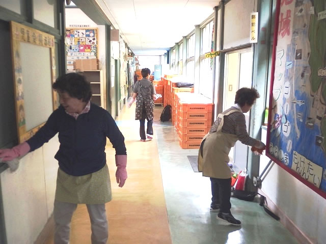 校舎内の清掃を行う住民
