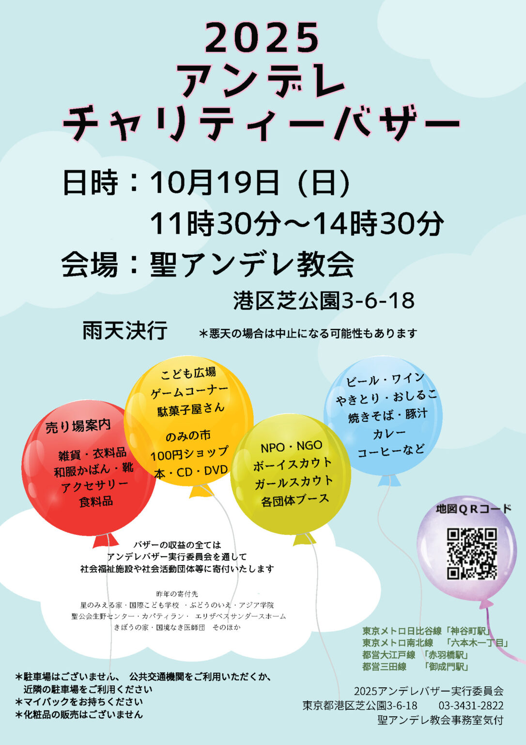 10/19(日)2025アンデレチャリティバザーに参加します!